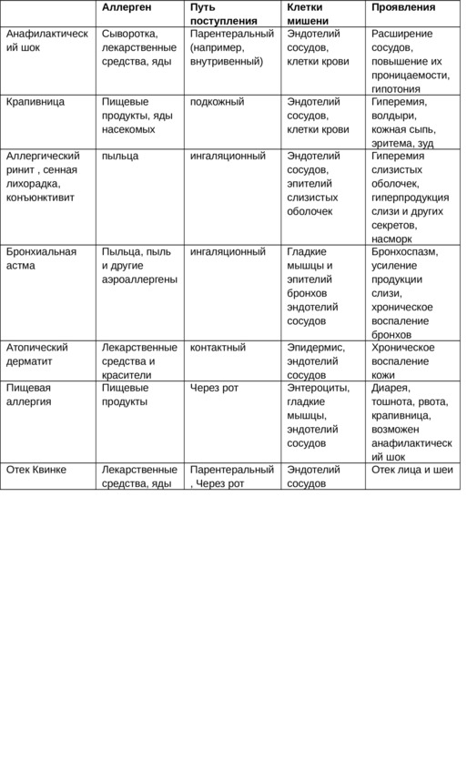 ВИДЫ АЛЛЕРГИЧЕСКИХ РЕАКЦИЙ