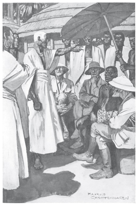 Мы со Стивеном уселись среди королевских советников. Вскоре появился Бауси в сопровождении Брата Джона и, поздоровавшись с нами, велел привести послов понго. Вошли высокие светлокожие мужчины с правильными семитскими чертами лица, одетые, как арабы, в белое. На шее и запястьях они носили золотые и медные кольца. В общем, выглядели послы солидно; они разительно отличались от большинства жителей Центральной Африки. Мне же их внешность внушала страх и отвращение. Добавлю, что копья понго остались за изгородью, окружавшей королевское жилище. Послы сложили руки на груди и с достоинством поклонились королю.