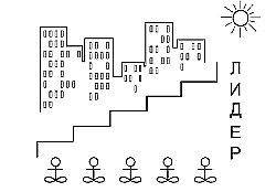 Человечек шагает по служебной лестнице к вершине. Он двигается со ступеньки на ступеньку, со ступеньки на ступеньку, перебирая своими ножками (он просто обязан все время двигаться, ведь он амбициозен и не может позволить себе стоять на месте!), не замечая, что город довлеет над ним. При плохой экологии, в толчее, в условиях непрестанной конкуренции человечек карабкается все выше – как если бы он взбирался на вершину горы, – и в конечном счете у него сбивается дыхание, ослабевает организм, и вот – человечек всего достиг, а счастья – нет.