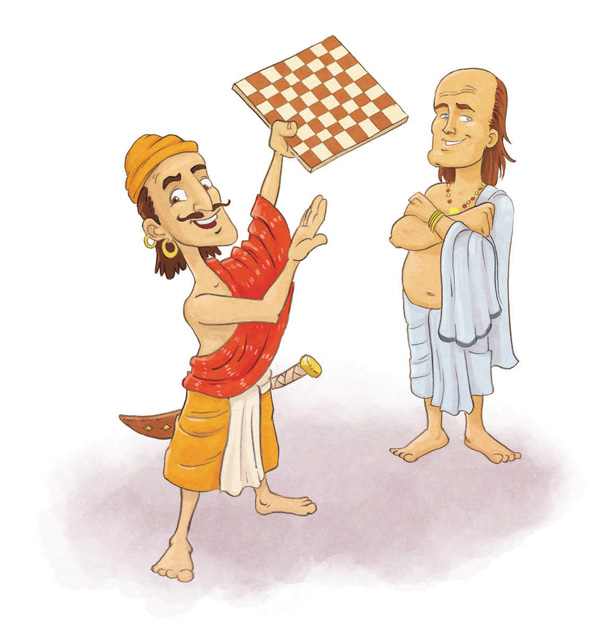 – Кроме того, наш великий Ариабхата пожелал себе весьма скромный приз. Стоило мне пожаловаться, что обещанная золотая награда слишком дорого обойдётся казне в нынешние беспокойные времена, Ариабхата ответил, что он с радостью довольствуется рисовыми зёрнами. Разве это не верх благородства? За первую клеточку на доске он желает лишь одно рисовое зёрнышко, за вторую – два, за третью – четыре и так далее. То есть число рисинок удваивается с каждой из шестидесяти четырёх клеток. Я уже отправил казначея за рисом. Мы выложим зёрнышки на доску прямо тут, на площади. Большое спасибо Ариабхате, – закончил король свою речь.