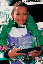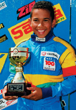 I also had my first crash at Rye House on a practice day. I think it was Saturday, 30 January, the day before my first ‘black plate’ race day. It was getting close to the circuit closing time and we were just about to finish. We were on our last couple of runs and some dude came up on the inside of me and clipped me into the first corner. I didn’t even know he was there and he sent me off flat-out into the tyre wall. I went straight into the tyres – my kart was all bent and damaged and I had a bleeding nose. My dad charged up from the bottom end of the circuit fearing that I had hurt myself, but when he got to me the first thing I said was, ‘Can you fix it for tomorrow?’ I wasn’t bothered at all about me. I was just in a bit of a daze. My dad drove all the way to the other side of London to find the parts for my Allkart. Eventually he got the necessary parts from a nice man called Bruno Ferrari. Bruno used to tune race engines for Dan Wheldon and a few others at the time. Dan was then a huge karting star even though he was only about thirteen. Anyway, my dad got the parts and fixed my kart; we went racing the next day and I brought home my first trophy!