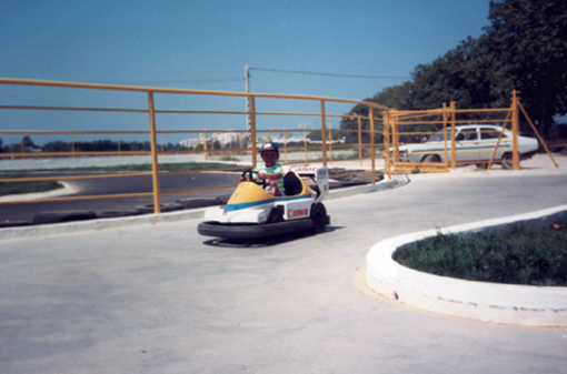 My first run in a kiddie-kart during a family holiday in Ibiza in August 1988, aged three.