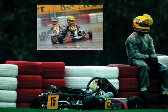 Eventually I competed in events all over the country nearly every two weeks. I remember going up to Larkhall, in Scotland, and staying in this weird hotel where everything was painted black. It was a real scary Addams Family type of place! And there was a place called Rowrah up in the Lake District way up north, where it seemed to rain non-stop. But it was all good experience, travelling out into the middle of nowhere just to race karts. The whole family used to go along in my dad’s red Vauxhall Cavalier with a little old box trailer that danced around all over the place behind us. We stuck all the gear in this little box thing, then we put the go-kart on top of it, with all these different straps to stop the thing from flying away. And off we’d go.