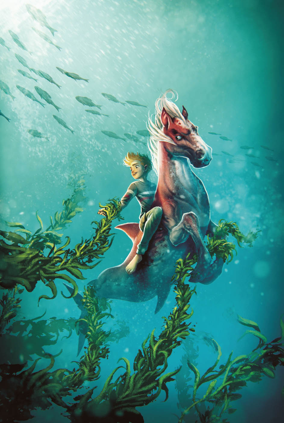 Trotzdem erreicht eine ihr Ziel, streift Venn an der Flanke. Das Kelpie schnaubt wütend auf, blaues Blut tropft aus der kleinen, aber tiefen Wunde. Rasch presst Mats seinen Pulloverärmel darauf und hofft, damit irgendwie die Blutung zu stoppen. Gleichzeitig hält er Ausschau nach weiteren Geschossen. Da wirbelt der nächste Schwung durchs Wasser.