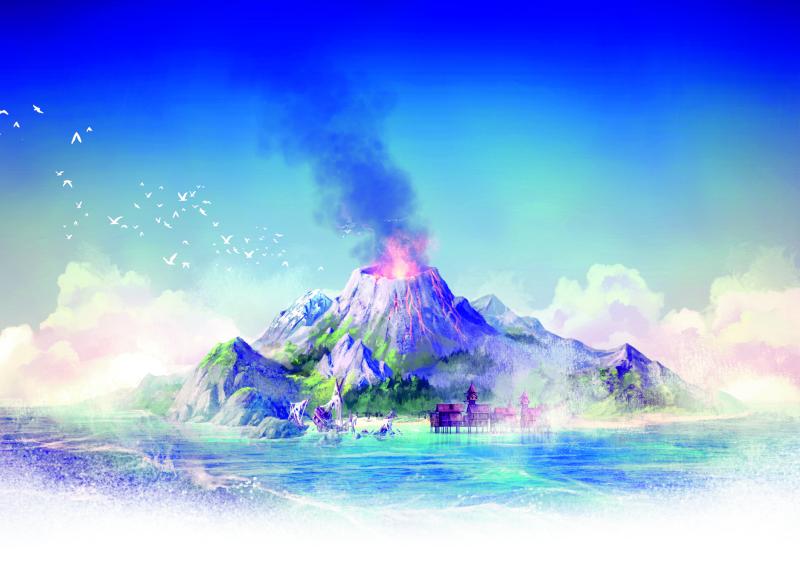 Снорри поспешил за ней и указал щупальцем на вулкан, возвышающийся в центре острова. Рядом с ним остальные горы выглядели просто игрушечными. Из кратера поднимался серый дым, и постепенно он становился всё гуще. Земля задрожала сильнее, а морская бирюза потемнела и стала разбегаться кругами. Вдруг из жерла вулкана вылетели раскалённые камни. Они разлетелись по острову: некоторые сразу гасли, другие, ударившись о землю, растекались огненными ручьями.