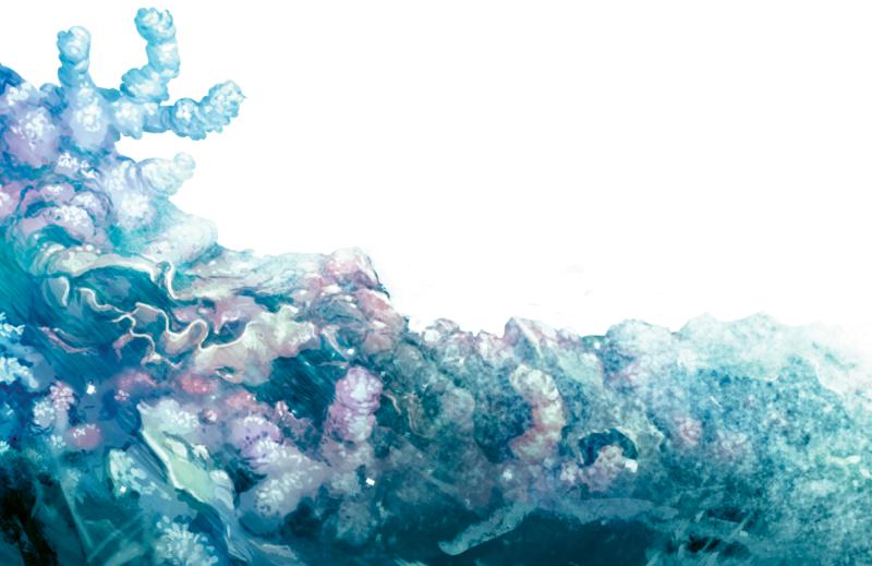 Скирн, учитель водной магии, не терпел опозданий. Аквина пыталась тайком пристроиться на коралловом рифе позади одноклассников, но в этот момент Скирн повернулся к классу и заметил её: