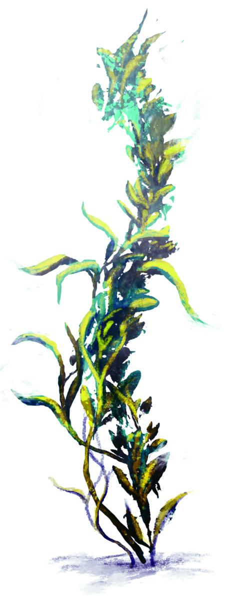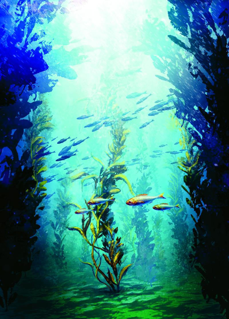 Сирена направилась по белым пескам за город. Вскоре показался лес келпи: густая зелёная чаща водорослей тянулась до самой поверхности воды, листья переплетались друг с другом. Аквина скользнула в заросли, где ничего не было видно дальше собственного хвоста. Мимо проплыла черепаха, на дне копошились рачки и морские ежи, камбала шустро закапывалась в песок.