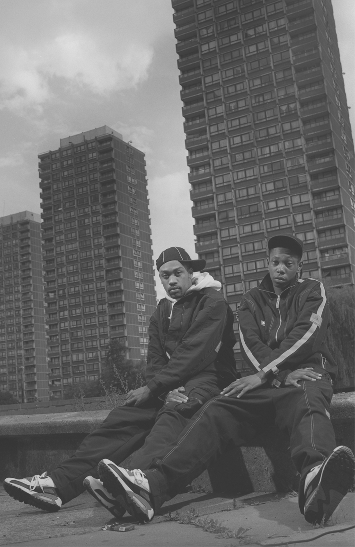 Dizzee and Wiley in front of Crossways Estate, aka ‘the three flats’, 2002