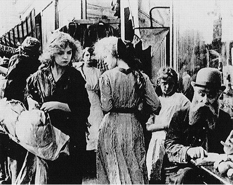 Позиция публики определяется вводным титром: «Оборотная сторона жизни Нью-Йорка». Зрителю предлагается занять «правильную» сторону вне той социальной среды, которая показана на экране. Этой отсылкой к творчеству Рииса (хорошо знакомого с жизнью иммигрантов и бедноты) Гриффит выражает свою симпатию к людям и обычаям гетто с его особой красотой и живописностью, предлагая посмотреть на все это с выигрышной позиции туриста или с ностальгической теплотой. В то же время он предлагает зрителю внимательно вглядеться в фильм, используя механизмы идентификации: в частности, индивидуализируя характеры, выстраивая поведение камеры и приближаясь к иллюзионистскому вуайеризму классического кино. В этом плане образ иммигранта, которому предусмотрительно отводится декоративная роль, уже не выражает никакого специфического социального опыта, создавая вместо этого «реалистический эффект» (в бартовском смысле) и придавая аутентичность повествованию в целом167.