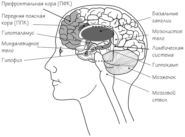 Каждый из этих отделов вашего мозга многофункционален. Ниже перечислены функции, важные для этой книги.