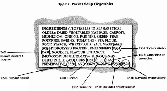 This growth in interest has led to a public demand for more information, and since 1962 the EEC has been issuing Directives on additives. Since the beginning of January 1986, most foods have carried a full list of additives, apart from flavourings, described by their E numbers on the package. A great step forward—providing you can fully understand the implication of the E number! For instance, I have aspirin sensitivity, and my wife is asthmatic. So we need to know, for both those conditions tend to bring in their wake sensitivities to certain common food preservatives and colours. The book describes these relationships fully, and in addition makes a convincing case for the full disclosure of ingredients and additives on products where they are not yet required to appear by law, such as in many types of confectionery, alcoholic drinks and medicines.