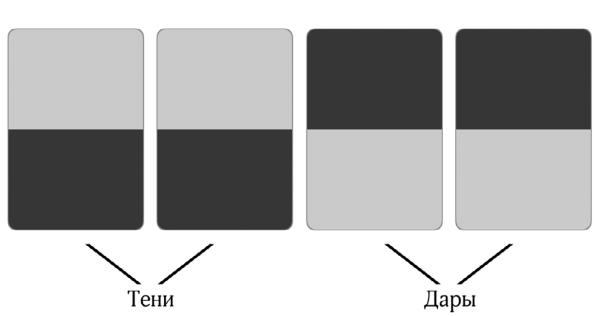 2. Первые две карты нужно выложить Тенями вверх, вторые две – вверх Дарами.