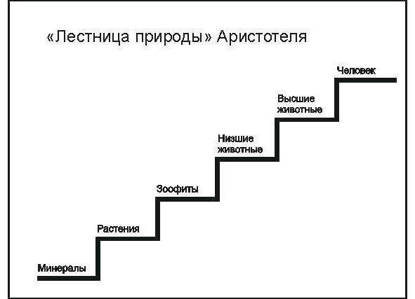 Со времени Аристотеля ученые регулярно приходили к мысли, что все создания природы, тела и вещи природы, могут быть расположены в восходящем порядке, сообразно уровню сложности своей организации. При этом, в книге Аристотеля «О частях животных» эта идея о ступенеобразном расположении существ, как общий закон живой природы, формулируется следующим образом: