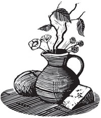 The squat little forge was a welcome sight. Moss pushed at the door. Warmth and smoke wrapped her like a blanket. Pa was already asleep, a rising, falling bundle on his pallet. They trod past him softly and settled on the low stools by the fire. The clear October sky brought a chill to the air and Pa allowed a log or two to burn way into the night.