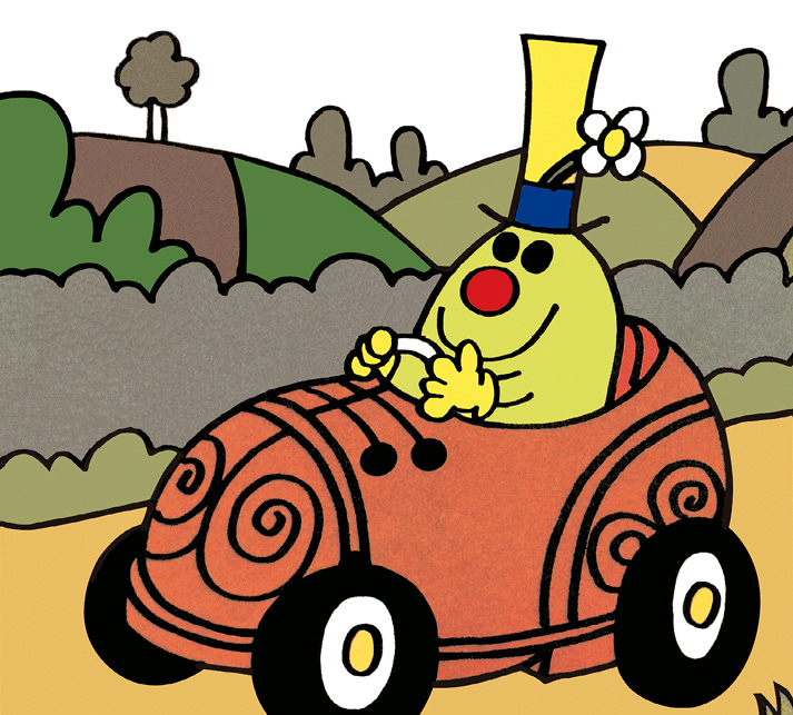 Después de almorzar, Mr. Divertido decidió salir a dar una vuelta en su coche.