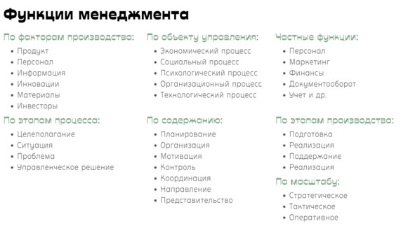 Функции менеджмента в строительных проектах образуют наиболее устойчивую категорию, реализация которой связана с планированием, организацией, координацией, направлением, представительством и контролем различных видов ресурсов (людей, времени, денег, информации и др.) для достижения поставленных перед организацией или проектом целей. Функции менеджмента в строительных проектах взаимосвязаны и вместе составляют комплексный подход к управлению, обеспечивая эффективное функционирование и развитие строительного проекта, двигая организацию на пути к эффективной его реализации.