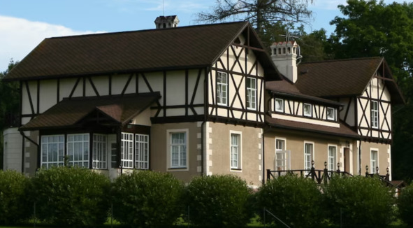 Рис. Усадьба с канилюрными капителями, несущими фронтон (заполнение стен второго этажа выполнено в виде барельефа в стиле ампир, кровлю всей усадьбы подчеркивает массивный карнизный пояс, преобладание ограждений в виде балюстрады – характерная черта русской усадьбы)33