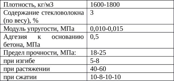 Технические характеристики стеклофибробетона приведены ниже: