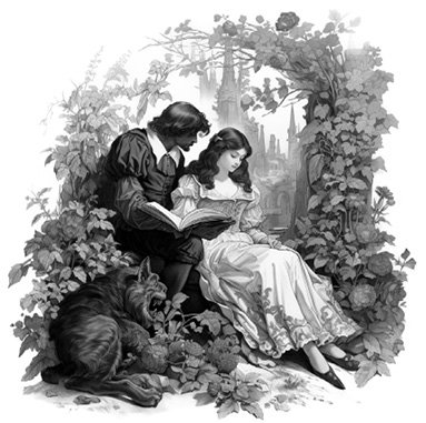 Младшая появилась ниоткуда, как и то чувство, которым она повелевала. Была она в чем-то огненном, переливающемся, золотые волосы ее плыли в воздухе, как облако. Взгляд ее был гордым и в то же время смиренным, каждый шаг ее был стремителен, как молния, и долог, как песня влюбленного. В тот миг дрогнули все сердца и затуманились все взоры.