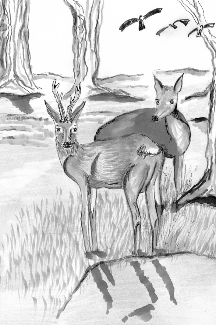 Ein breites Grinsen schob sich auf mein Gesicht. Die Welt war schön und jedes bittere Ende meilenweit entfernt. Ich steckte die Pfote in die Tasse, um auch die letzten Tropfen herauszubekommen. Während ich sie gedankenverloren abschleckte, beobachtete ich den Rehbock, der sich langsam seinem Rudel näherte – mit dem Stolz und der Anmut eines Königs. Die Rehe blickten zu ihm auf, trabten eines nach dem anderen zu ihm hin, um ihn zu begrüßen. Er senkte huldvoll den prächtigen Kopf. Meine Aufmerksamkeit wurde von zwei Meisen eingefordert, die sich zu mir auf den Tisch setzten und begannen ein kleines Stück von Mozart zu trällern. Ich wippte dazu im Takt mit der Pfote und brummte die Melodie mit. Es war ein wohliges Brummen, das zwar nicht immer den Ton traf, doch von Herzen kam. Die Vögel dankten es mir, indem sie einfach fortfuhren.