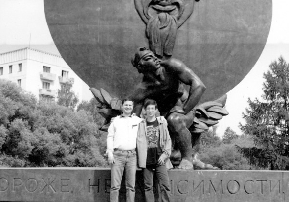 На площади между нашим домом и вьетнамским рестораном «Ханой» воздвигли единственный в мире памятник Хо Ши Мину (Хо Ши Мин завещал не строить ему памятники нигде и никогда, а если кто хочет увековечить его имя, то пусть строит больницу или детский дом, к примеру. Весь мир уважал это завещание, а Советский Союз, как всегда, наплевал). На огромной медной вертикально стоящей круглой тарелке высекли такое же круглое лицо вьетнамского вождя, а перед тарелкой поставили статую: в позе низкого старта приподнял голову в повязке вьетнамский крестьянин. Спрашиваю у работяг-каменщиков: это, вообще, кто? Отвечают: это Хо Ши Мин, а ПОД НИМ ЕГО РАБ!