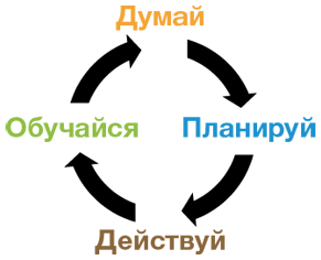 Добавьте к этому упорядоченные действия и активное обучение, и вы получите простой цикл стратегического планирования: «думай – планируй – действуй – обучайся».