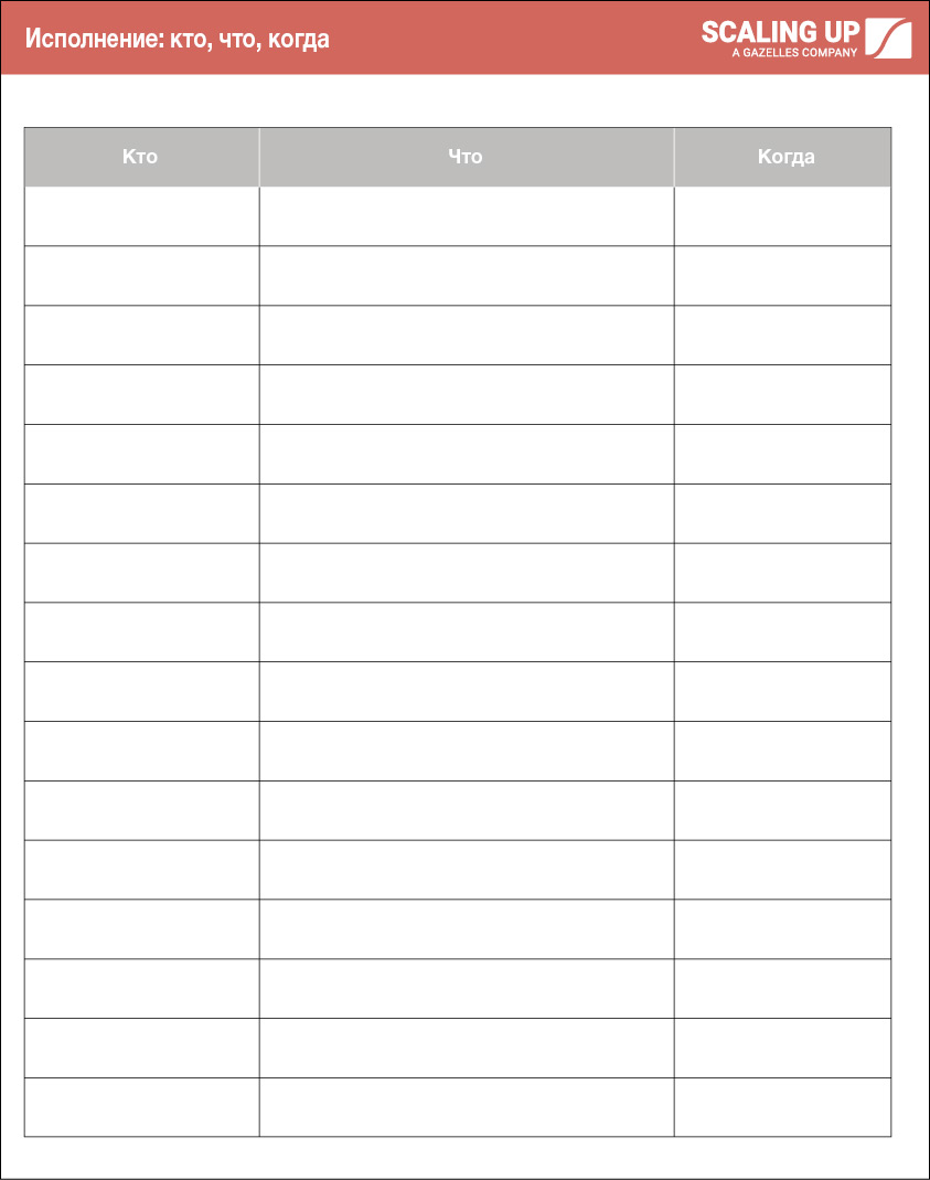 Самое главное – отвечать на вопрос «когда?» сроками, не превышающими промежутка времени между двумя еженедельными или ежемесячными совещаниями. Если нужно реализовать какую-либо масштабную инициативу, разделите ее на несколько этапов, которые можно завершить в течение нескольких недель (как говорится, слона нужно есть по кусочкам).