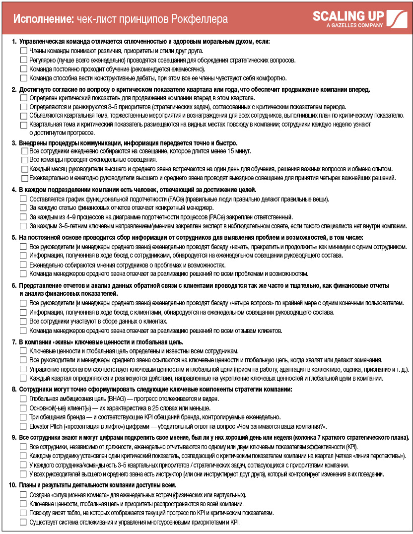 Следование этим принципам существенно повышает прибыльность и сокращает затраты времени на ведение бизнеса. В авиации используются контрольные листы, чтобы убедиться, что самолет в рабочем состоянии и выдержит полет. Рекомендуемый документ также представляет собой своего рода контрольный лист: он поможет проверить, готова ли компания развиваться и двигаться вперед.