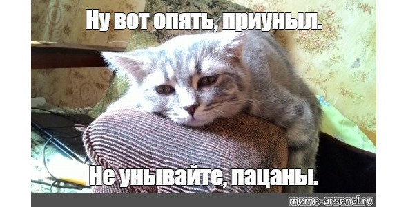 Это просто грустный котик. Он задумался о своей кошачьей жизни, что она будет коротка, а богатым ему так и не стать :)