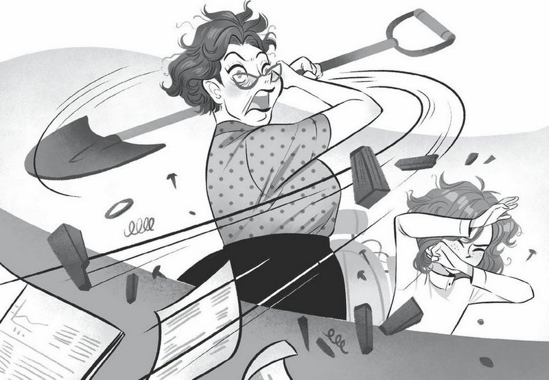 Миссис Мэлони нанесла ещё один удар. Во все стороны полетели шестерёнки, пружины и мелкие детали.