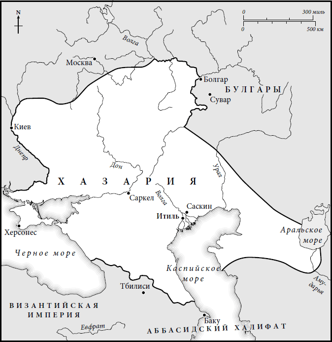 * * *Хазария, также известная как Хазарский каганат, существовала примерно с 650 года до конца X века. Она тянулась от Аральского моря на востоке до Днепра на западе, от Северного Кавказа на юге до поволжского Болгара на севере (примерно в 190 километрах к югу по трассе от современной Казани). Во время своего расцвета Хазария включала Киев и большую часть территории современной Восточной Украины, а также широкую полосу южнорусских степей. По сути Хазария представляла собой буферную зону между Византийской империей на западе и мусульманскими государствами на востоке (на Северном Кавказе и в Персии).