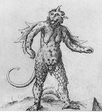 [41] Два средневековых дьявола: Баал (слева) и Астарот (справа). Рисунки пером из манускрипта Действо о винограднике Якоба Руффа. Цюрих. 1539