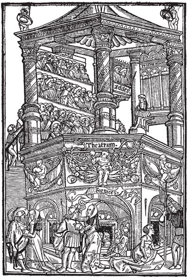Вскоре после открытия античной драмы стало ясно, что ни закрытые, ни уличные средневековые сцены для ее постановки не подходят. Опираясь на трактат Витрувия Десять книг об архитектуре, написанный приблизительно в 16–13 годах до н. э. и впервые опубликованный с иллюстрациями в 1511-м, итальянские театральные архитекторы попытались применить принципы устройства древнеримского театра в своей практике. Вместе с переосмыслением физических аспектов пришло осознание двух важнейших античных требований – формы и ограничения, совершенно чуждых идее всеобъемлющей универсальности библейских историй. Подвергнутые доскональной систематизации, эти принципы теперь навязывались даже с большей неукоснительностью, чем во времена самой Античности. Это было неизбежно, равно как и то, что в качестве ориентиров брались громоздкие, перегруженные декором эллинистические и римские театральные сооружения, далекие от простоты открытых греческих театров V века до н. э., и что избыточные страсти трагедий Еврипида и Сенеки ценились выше, чем драмы Эсхила, а в комедийном жанре предпочтение отдавалось не Аристофану, а легким пьесам Менандра, Плавта и Теренция.