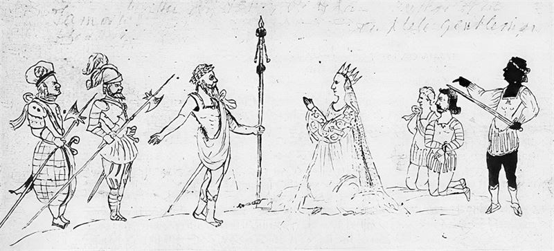 [81] Персонажи трагедии Шекспира Тит Андроник. Рисунок из манускрипта Генри Пичема. 1595
