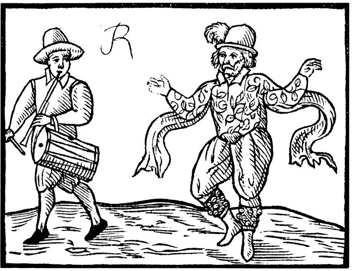 [82] Танцующий Уильям Кемп. Гравюра с титульного листа собственного сочинения Кемпа Девятидневное чудо. 1600