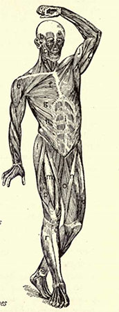 ОБРАТИТЕ ВНИМАНИЕ, НАСКОЛЬКО ПОЛНО СКЕЛЕТ ПОКРЫТ МЫШЦАМИ. ПОСМОТРИТЕ, МОЖЕТЕ ЛИ ВЫ СКАЗАТЬ, КАКОЕ ДВИЖЕНИЕ СОВЕРШАЮТ МЫШЦЫ РУК, ТУЛОВИЩА И НОГ.