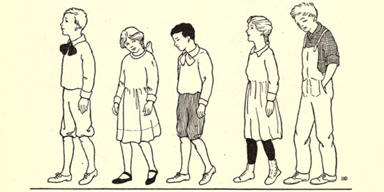 Однажды Гарольд, мой знакомый мальчик, который был очень небрежен в своей походке, шел куда-то и сутулился плечами вперед, с поникшей головой. Его двоюродный брат, у которого была фотокамера «Кодак», сделал его снимок и позже послал его Гарольду. Гарольд с трудом мог поверить, что это он сам. Он решил, что исправит свою плохую осанку, но оказалось, что сделать это совсем не просто. Сначала он попробовал носить жесткий воротник из картона высотой в один дюйм (примечание переводчика: 2,5 сантиметра) сзади и в три дюйма (7,5 сантиметров) спереди, чтобы заставить себя держать подбородок выше. Но больше всего ему нравилось ходить каждый день по миле (примечание переводчика: 1,6 километра) с подносом или корзиной на голове.
