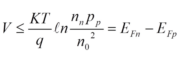 которое также не превышает Eg. Здесь nn и pp – соответственно концентрации электронов в n – области и дырки в р – области. EFn и EFp – энергии уровня Ферми в n – и р – областях.