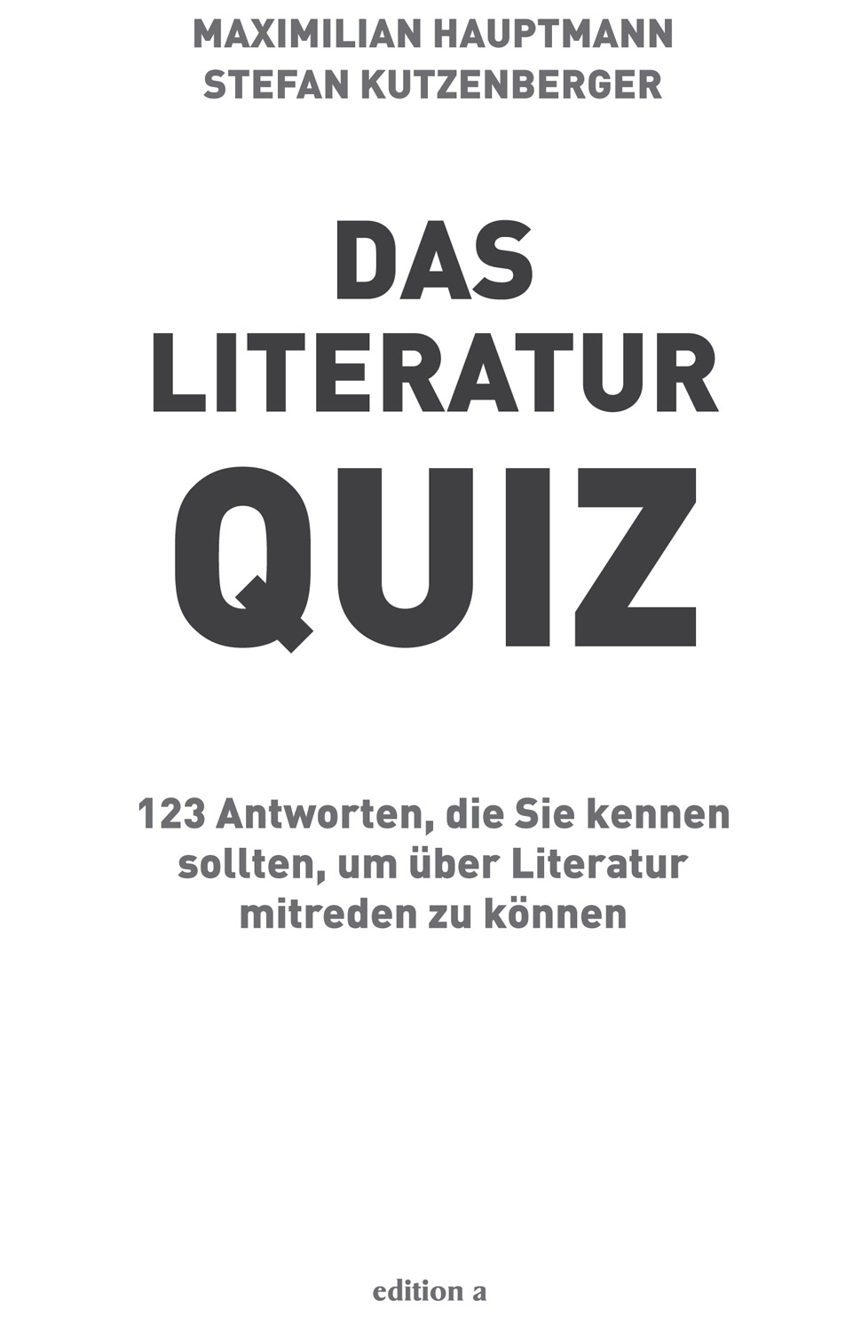 Sie haben zwei Möglichkeiten, dieses Buch zu benützen. Sie können es zur Hand nehmen, wenn Sie allein sind, auf einer Zugfahrt oder am Strand zum Beispiel, und das Quiz mit sich selbst spielen. Sie überprüfen dabei Ihr Wissen über Literatur und frischen es auch gleich auf unterhaltsame Weise auf.