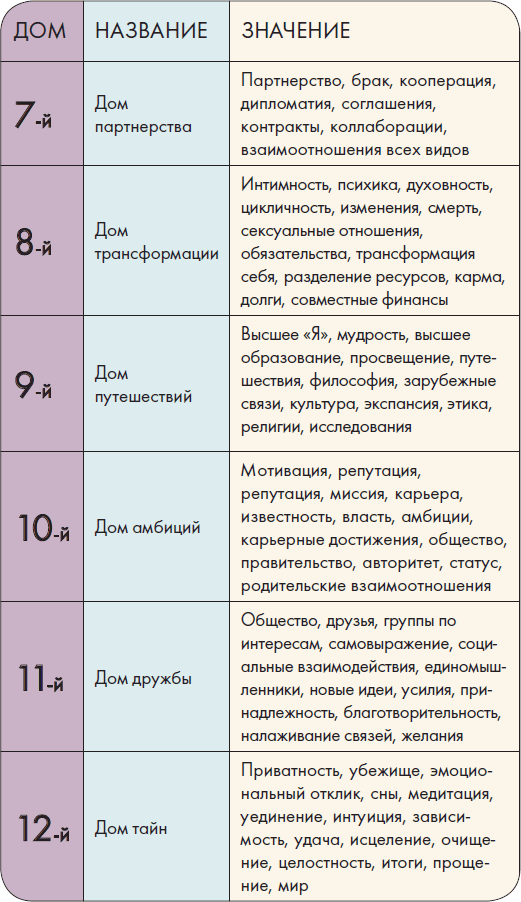 • дома, отвечающие за романтическую составляющую: 5-й, 7-й, 8-й;