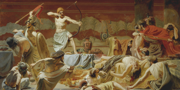 Так Одиссей заканчивает свою повесть на пиру царя Алкиноя. «Царь Алкиной исполнил обещание: Одиссей взошел на феакийский корабль, погрузился в очарованный сон, а проснулся уже на туманном берегу Итаки». Там он устроил кровавую баню женихам своей супруги, верно ждавшей его двадцать лет – десять, пока благоверный околачивался под Троей, да еще столько же – пока он же сновал между кирками и калипсами, в промежутке калеча циклопов и разграбляя прибрежные селения. 16