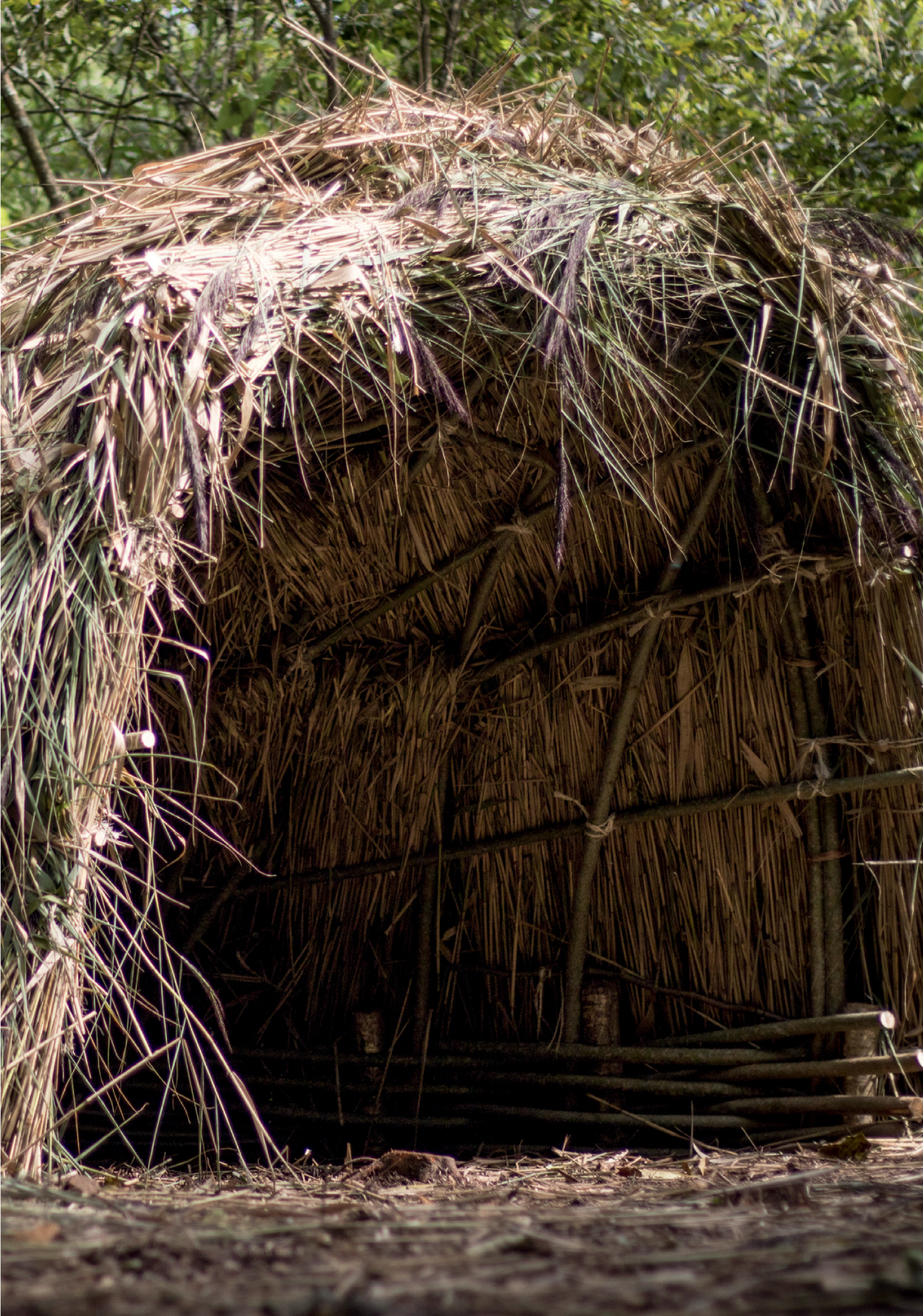 The human story of Ireland begins around 13,000 years ago, with the retreat of the glaciers that had covered the country during the Ice Age, followed by a slow rise in sea levels. Meadows and then scant woods of juniper and birch spread across the land, followed as the centuries passed by dense broadleaf forests. The land that became Ireland was possibly not yet an island, for land-bridges may have offered paths from Britain. However, it is clear that by 7000 BC human hunter-gatherers had crossed by land or sea to establish a permanent presence in Ireland, felling trees, spreading along the river valleys, and hewing out a livelihood amid populations of wolves, bears, boar, and smaller mammals. They dwelt in skin-roofed huts. Excavations of early settlements – on the banks of the river Bann at Mountsandel in County Derry, for example – reveal eloquent remains in the form of charcoal left by fires, flint worked into axe-heads, animal bones, and the ubiquitous shells of hazelnuts that were a mainstay of the Mesolithic diet. The population waxed and waned as the climate warmed and cooled: by 4000 BC, it is estimated that there were fewer than 10,000 people living in Ireland.