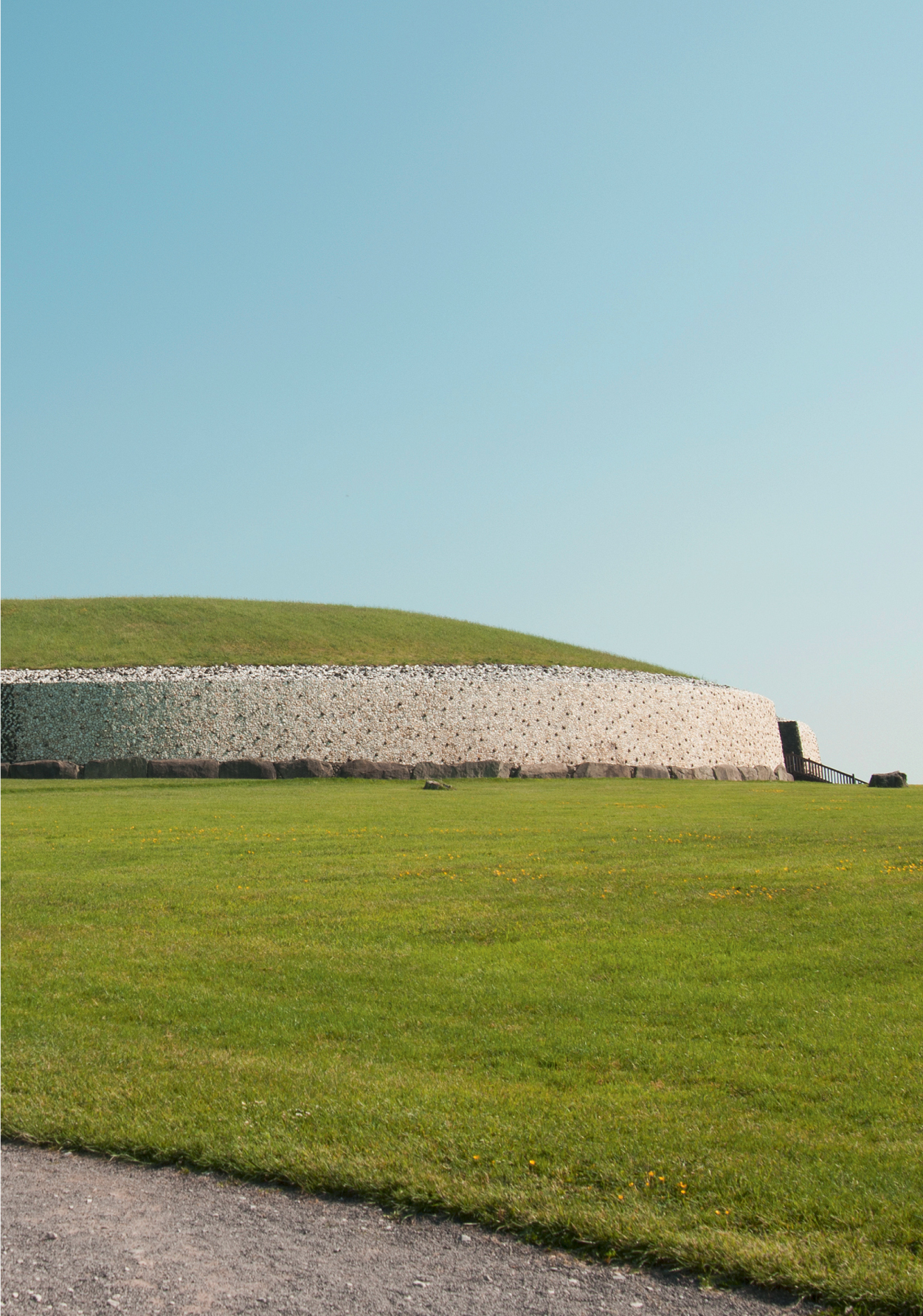 In the fertile lowlands of County Meath rises the spectacular Neolithic site at Newgrange. This great monument was established c. 3200 BC, making it considerably more venerable than Stonehenge or the Pyramids, and it takes the form of a vast domed mound enclosing passages and inner chambers, with walls adorned by a range of carvings. Evidently, the structure was designed according to strict astronomical calculations: today, on the winter solstice, the first rays of the rising sun enter the mound and flood the innermost chamber with light. Newgrange is one element in Brú na Bóinne, a complex of Neolithic sites ranged along the Boyne river valley. These sites in turn are just some among many Neolithic monuments – such as the Poulnabrone dolmen in County Clare and Carrowmore in County Sligo – that still survive in Ireland. Each such site shares many similarities with other Neolithic monuments scattered across Europe, suggesting close connections between a range of dispersed civilizations. Newgrange is bound up with Irish myth but its essential function is still unknown. As such, it exemplified the ability of ancient humans in Ireland to leave lasting, remarkable, but essentially mysterious imprints on the landscape.