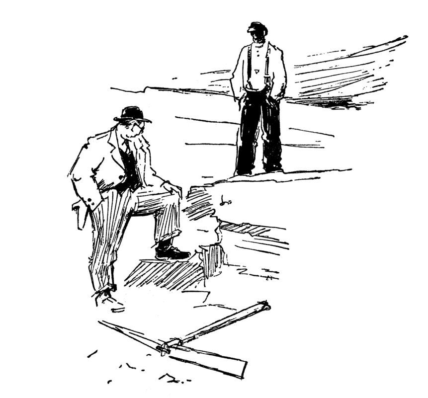 Der gute Mann war nicht davon abzubringen, sich einmal genau bei uns umsehen zu wollen. Was konnte ich dagegen machen? Wir mussten ja die gelehrten Herren bei ihren Untersuchungen unterstützen, soweit wir konnten. Mein gemütlicher Gast begann also, in aller Seelenruhe, zwischen Erde und Steinen mit einer Behendigkeit herumzuklettern, die man seiner Körperfülle gar nicht zugetraut hätte. Er sah sich dabei überall aufmerksam um, und ich wurde im Stillen schon ein wenig ärgerlich und ungeduldig, denn ich hatte den Tag gerade eine Menge zu tun und war nicht ganz einverstanden damit, dass mir der neugierige Bücherwurm gerade in diesem Augenblick in die Quere kam. Aber es half nichts — ich musste mich fügen. Eigentlich freute es mich auch wieder, dass die Männer der Wissenschaft so großes Interesse für unsere Arbeit zeigten, auf die sie nicht verzichten können.