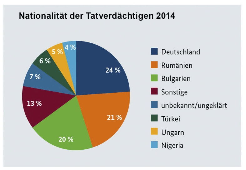 Etwas anders sieht es bei den Tätern bzw. Tatverdächtigen aus, hier besteht die Hauptgruppe aus Deutschen: