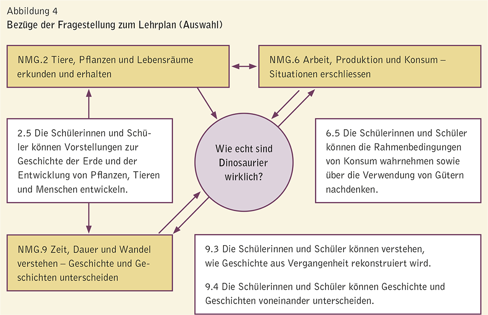 Die knappe Beantwortung der Prüffragen bestätigt, dass es tatsächlich pädagogisch sinnvoll sein könnte, wenn sich Schülerinnen und Schüler über längere Zeit mit der Frage auseinandersetzen, inwiefern Dinosaurier echt sind. Ausgehend von der übergeordneten Frage und einer darauf basierenden Sachanalyse könnten Schülerinnen und Schüler unter anderem untersuchen, wie und warum sich die Darstellungen von Dinosauriern im Laufe der Zeit verändert haben. Zentrale Ziele eines an dieser übergeordneten Frage ausgerichteten Unterrichts lägen dann darin, die Herkunft unseres Wissens und unserer Bilder zu hinterfragen und über Grundlagen für die Unterscheidung zwischen Realem und Fiktivem nachzudenken. Zusammenfassend kann festgestellt werden, dass dieses Unterrichtsthema aufgrund der übergeordneten Fragestellung das Potenzial besitzt, Schülerinnen und Schüler dabei zu unterstützen, «Phänomene und Zusammenhänge der Lebenswelt wahrzunehmen und zu verstehen, selbstständig, methodisch und reflektiert neue Erkenntnisse aufzubauen, Interesse an der Umwelt neu zu entwickeln und zu bewahren, anknüpfend an vorschulische Lernvoraussetzungen und Erfahrungen eine belastbare Grundlage für weiterführendes Lernen aufzubauen, in der Auseinandersetzung mit den Sachen ihre Persönlichkeit weiter zu entwickeln sowie angemessen und verantwortungsvoll in der Umwelt zu handeln und sie mitzugestalten»[57].