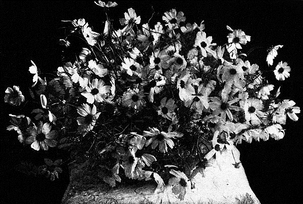 Cosmos, white, pink, crimson; three to five feet; from the fifteenth of July until killed by frost.