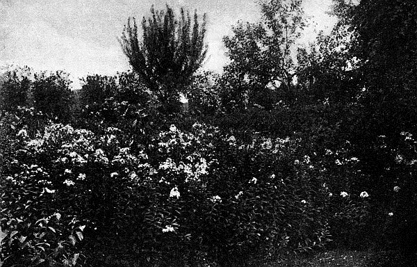 Wherever there is a fence make a border, wide or narrow according to your space; if wide, – and it may be as much as twelve feet wide, – always make the edge irregular, never straight. Some prefer a hedge at the back of the border. The best effect and quickest screen is made by planting, against the fence at the back of the border, White Lilacs (not the Persian), Syringas, Deutzias and the beautiful new Altheas. Plant these shrubs three feet apart. In good soil they will send up great canes, and in four years time should be six feet high and shut you in from all prying gaze.