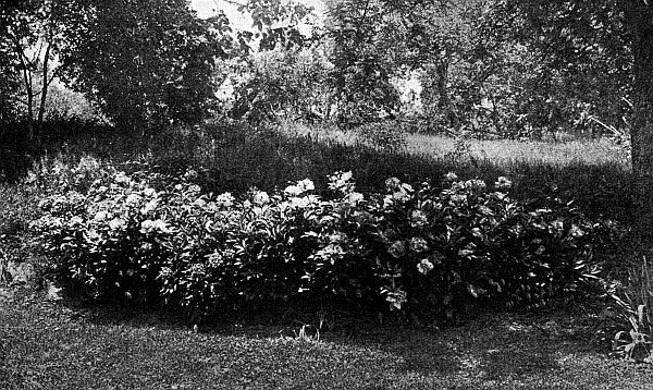 The Japanese Tree Peonies do not die to the ground every year, like the herbaceous kinds, but form woody branches and grow like a small shrub. The blossoms of these Tree Peonies are truly wonderful; the only care needed is a little fertilizer in the autumn and a slight winter covering. They are best grown in front of the shrubbery. They blossom before the herbaceous varieties. The herbaceous Peonies can be grown in large beds by themselves, in borders with other plants, or as single specimens in the grass or among the shrubs.