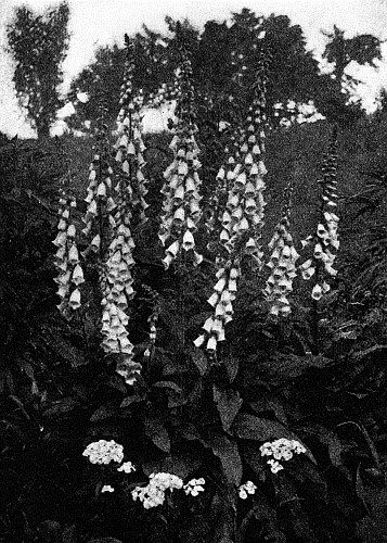 Foxgloves, white, spotted and pale lilac, are the pride of the garden. Plant them back of the Sweet Williams, in clumps of six or eight, or else with Peonies. They blossom at the same time, and the pinks or reds of Sweet Williams or Peonies, with here and there a mass of white, and the tall, graceful spikes of the Foxgloves rising above them, produce so beautiful an effect that you will simply have to go and look at them many times a day.